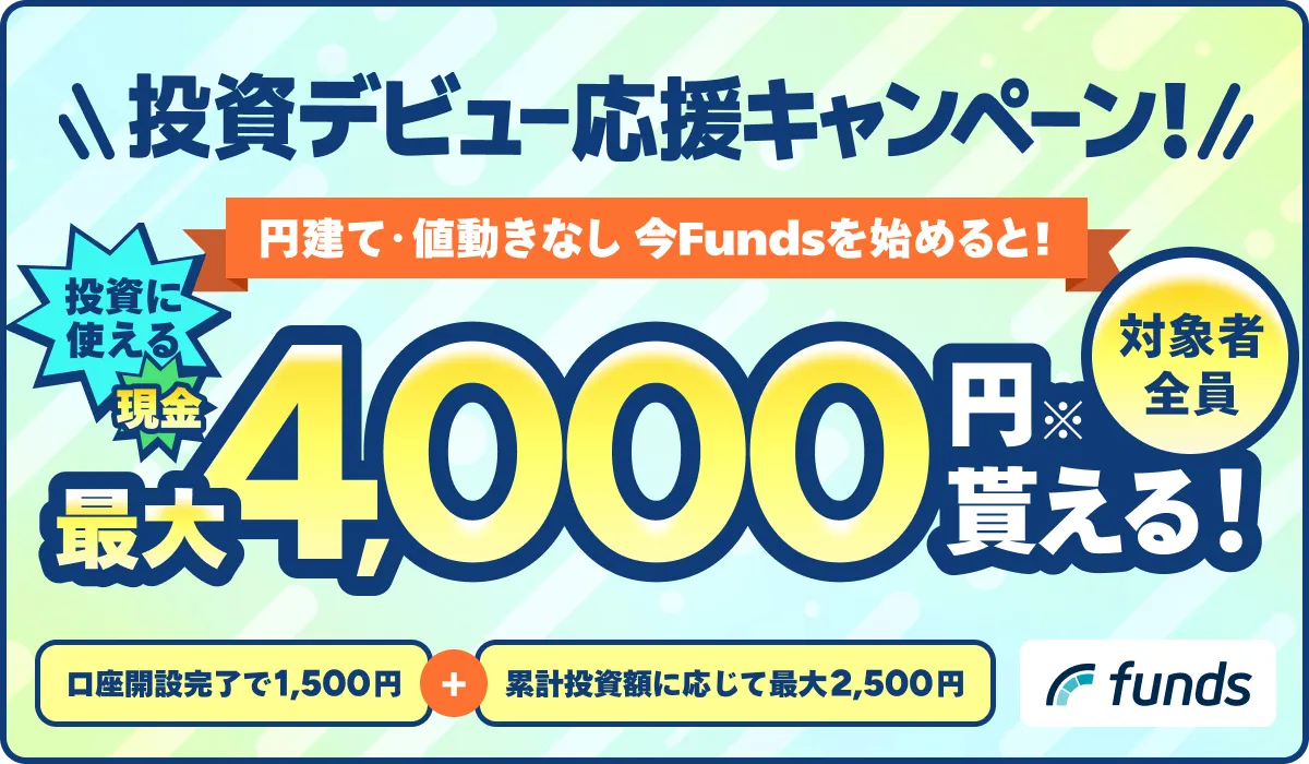キャンペーン期間中に新規で無料口座開設するだけでもれなく現金1500円、さらに初回投資額に応じて現金最大2500円がもらえます!(26年3月31日まで)