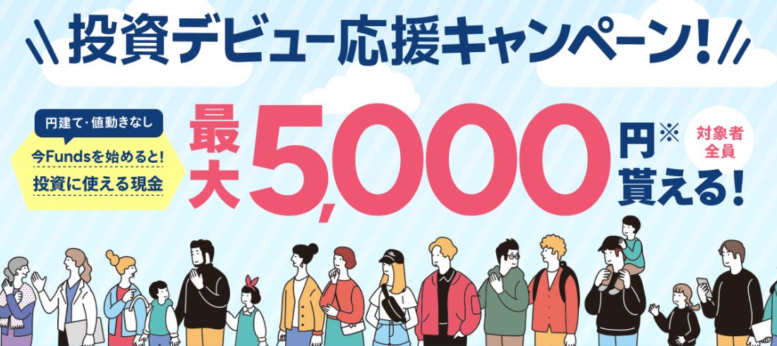 | 条件② | ファンドへの初回投資完了で2000円もらえる | |