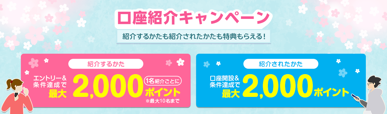 新規無料口座開設特典 | 最大2,200円 |